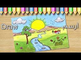 رسم منظر طبيعي للاطفال. تعليم الرسم للاطفال تعلم كيف ترسم منظر طبيعي لشروق الشمس youtube easy drawings animal decor clown faces